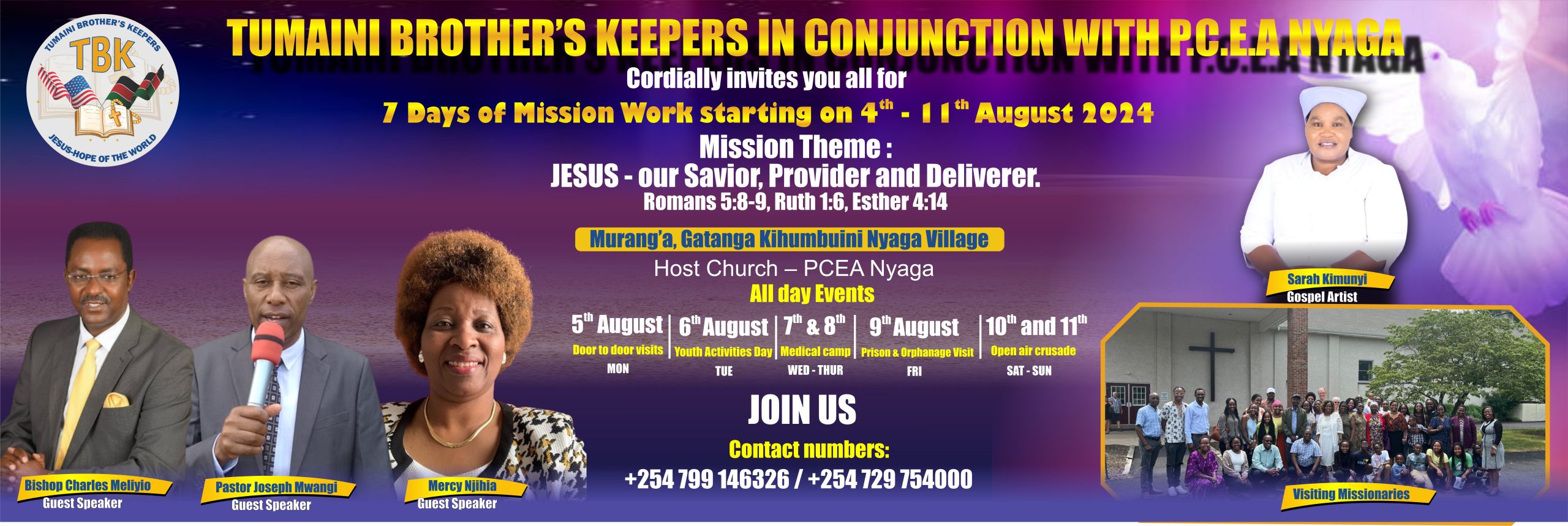 2024 Mission – Gatanga Division, Murang’a County August 4th – August 11th, 2024 Mission Field Preparation Funds Collection from Tumaini members, Partners and Friends. Missioners pay for their own expenses […]